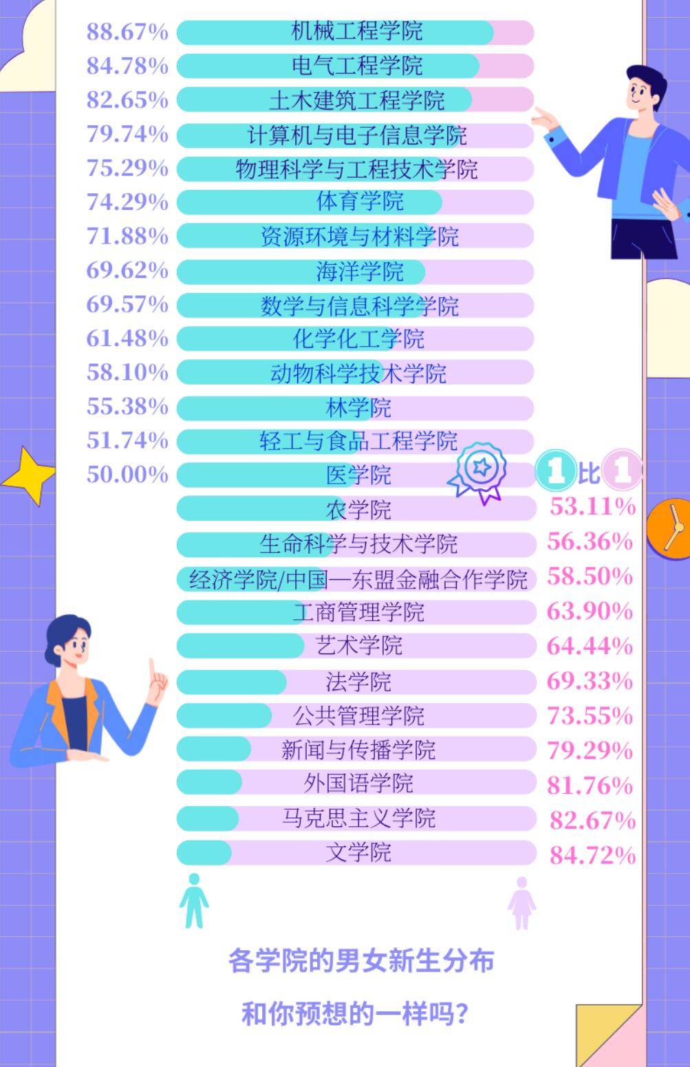 广西大学2022级新生男女比例数据。图片来源广西大学官微