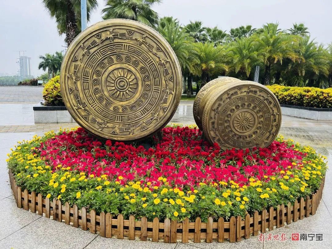 漫步在南宁街头、广场等公共场所,独具特色的景观小品花坛布置在各大广场、公园的显眼位置,花团锦簇、姹紫嫣红。一道道靓丽的风景线让人美不胜收,各种鲜花、旗帜、标语横幅等装饰,处处洋溢着喜迎东博会的浓浓氛围。