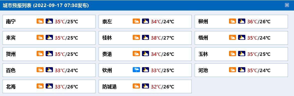 广西各市具体天气预报: