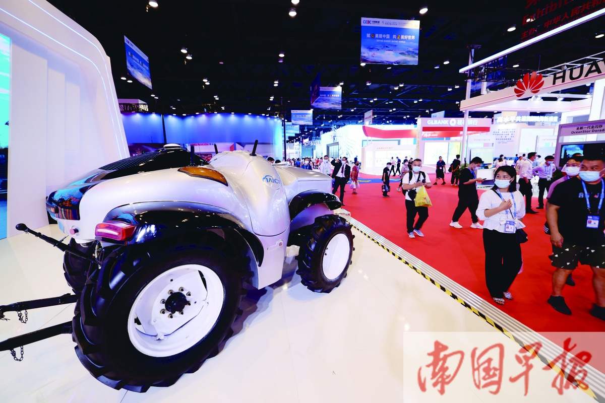 无人驾驶拖拉机。记者 邹财麟 摄
