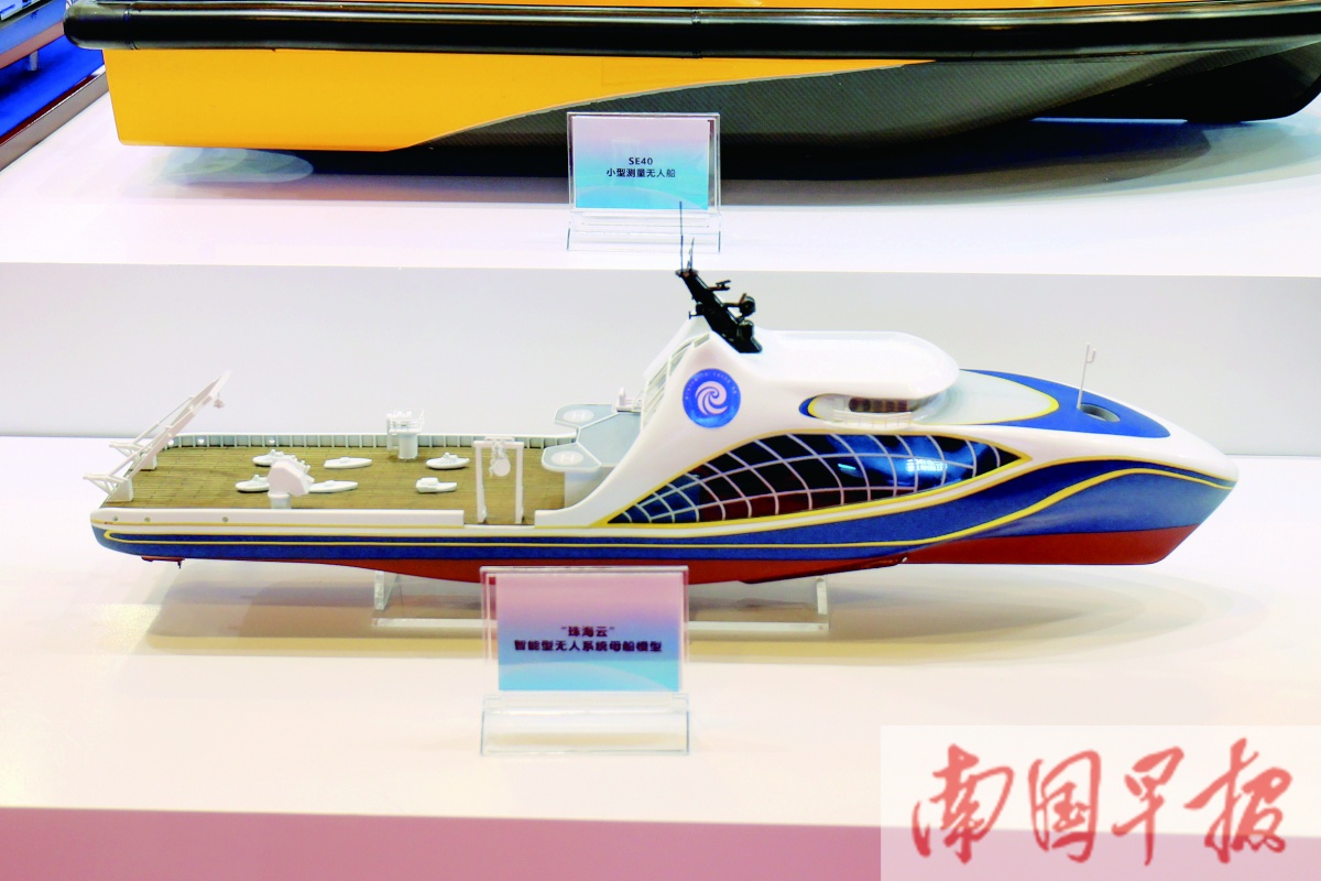“珠海云”智能型无人系统科考船模型。记者 邹财麟 摄