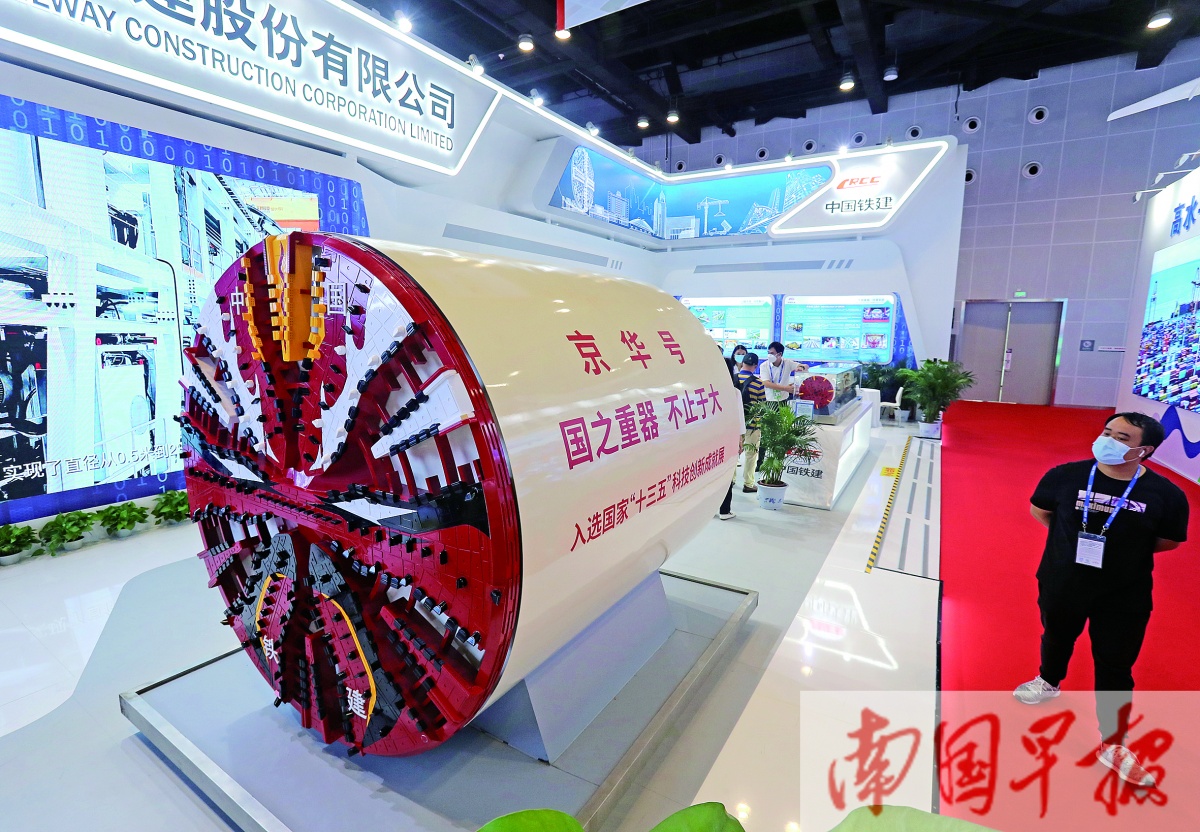 东博会先进技术展区展出的一台国产先进盾构机模型。记者 徐天保 何学俏 摄