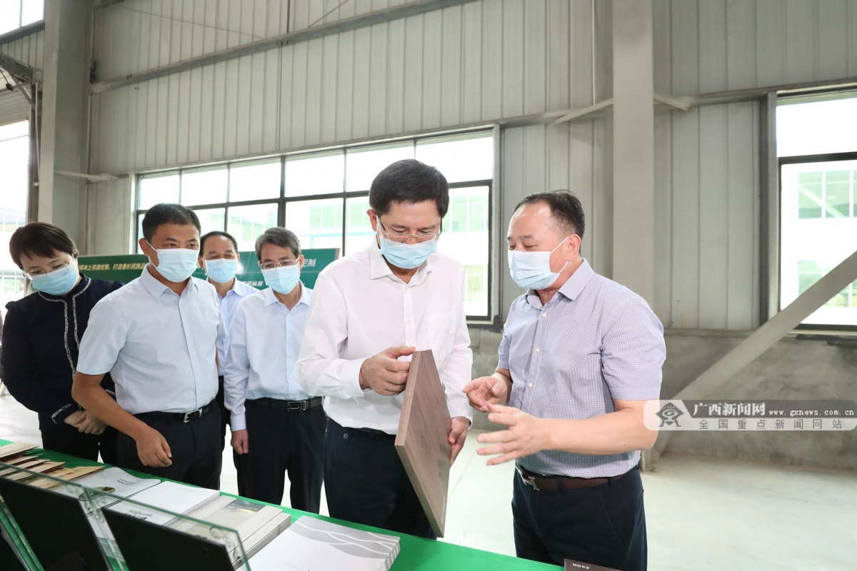 9月22日,自治区主席蓝天立深入柳州市融安县、三江侗族自治县,围绕乡村振兴和产业发展等开展调研。在广西壮象木业有限公司,蓝天立走进生产车间,检查木材加工流水作业安全生产情况。记者 邓华 摄