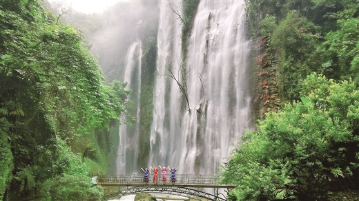 据悉,位于靖西市的古龙山大峡谷“十一”期间继续对外开放。古龙山大峡谷集峡谷群、瀑布群、溶洞群、地下暗河群、原始植被、峰丛绝壁、溪流奇石于一体,是中越边境线醉美网红打卡地,景区较为适合徒步观光游,游客可以零距离触摸约70米凌空飞泄的古龙大瀑布。