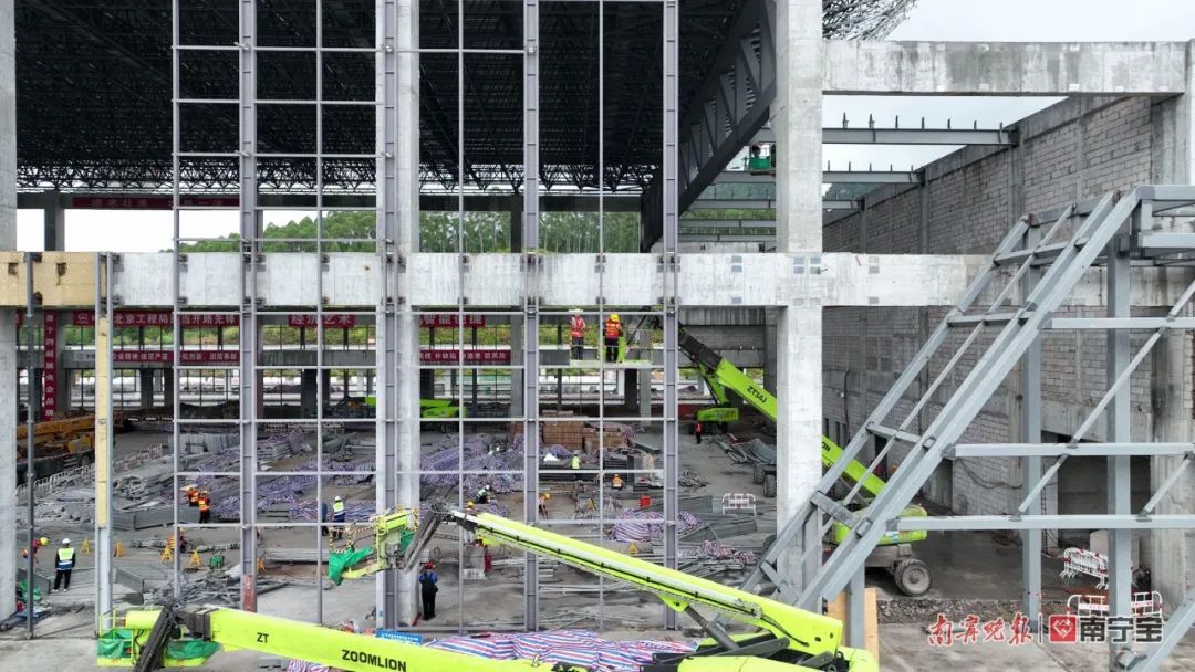 河池站热火朝天的施工场面。南宁晚报·南宁宝客户端通讯员 邢星 摄