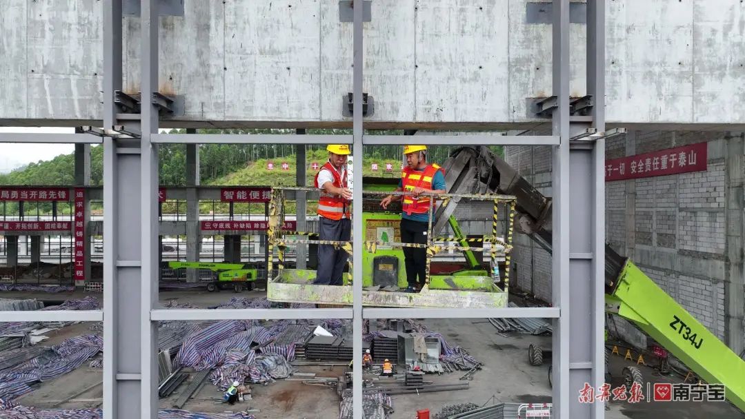 国庆长假,贵南高铁广西段站房施工“不打烊”,近1500名建设者挥洒辛勤汗水,扎实推进广西首条设计时速350公里的高铁建设。