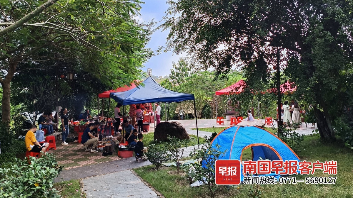 除了景区露营,南宁市区的一些公园也有不少游客在阴凉处搭帐篷,休息纳凉、野餐。