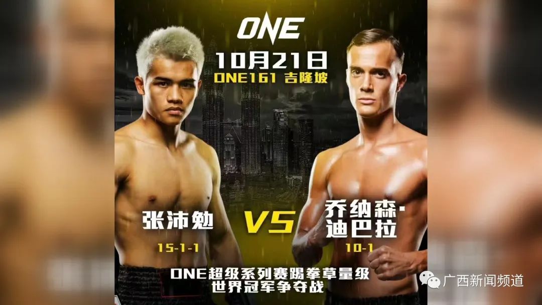 中国格斗超新星、曾被誉为“最强中学生”的格斗运动员张沛勉,11岁时便由班主任领上了格斗之路,14岁时开始在残酷的职业拳坛征战,面对成年拳手他毫无惧色、屡战屡胜,很快就获得了“最强中学生”的称号。签约ONE冠军赛后,首秀便将前ISKA世界冠军约什·托纳四次击倒,为自己赢得开门红。随后,他又战胜了草量级踢拳世界排名第二的阿斯兰别克·齐克列夫。10月21日,张沛勉将对战25岁的乔纳森·迪贝拉。乔纳森·迪贝拉于2020年签约ONE冠军赛,拥有10胜1负的不俗战绩,曾在北美赛场拿到数个地区和国家级冠军头衔。同时,乔纳森·迪贝拉也曾有过职业拳击的比赛经历,并且全部取得胜利。