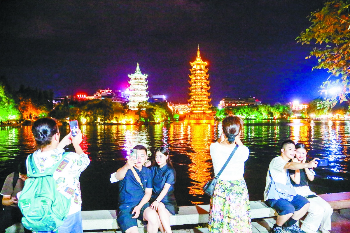 游客在桂林杉湖景区打卡。南国早报记者 游拥军 摄
