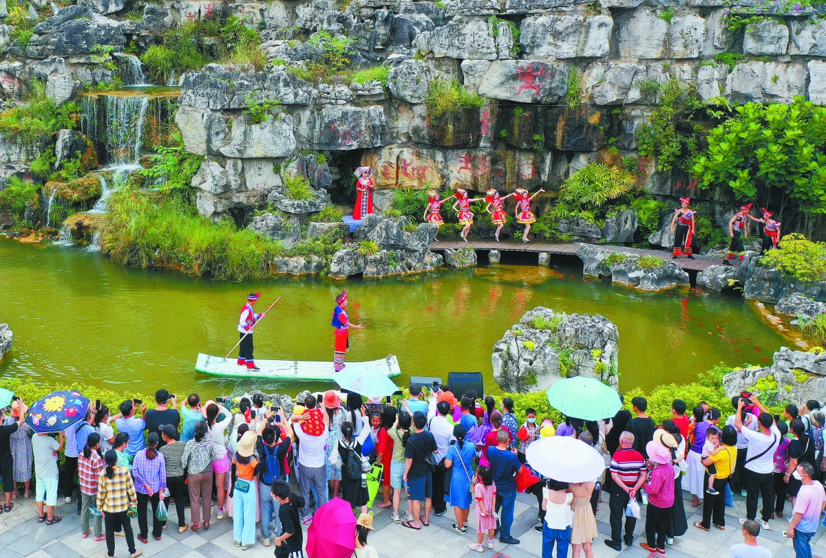 10月3日,游客在南宁园博园景区观看壮族婚礼展演,体验多彩的非遗文化魅力。南国早报记者 周军 摄