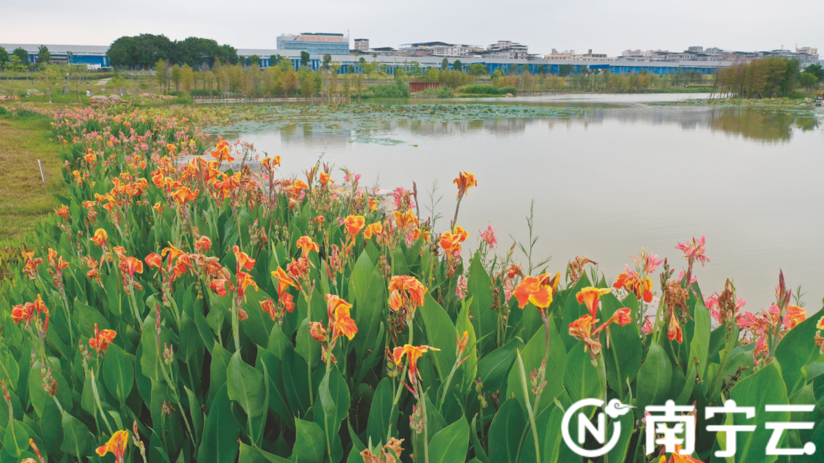 朝阳溪上游湿地景观带上的美人蕉。南宁云—南宁晚报