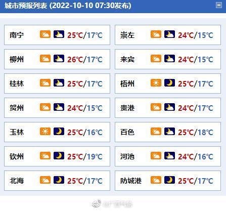 广西各市具体天气预报: