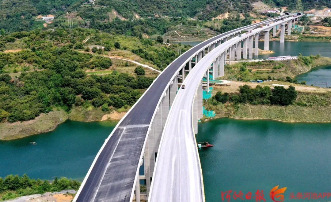 据了解,南丹至天峨下老高速公路项目主线长104.9公里,桥梁79座,隧道30座,桥隧比高达74.04%。全线设置互通式立交6处、服务区2处。项目建成通车后,形成广西北部地区的连接新通道,对于高水平共建西部陆海新通道,进一步构筑起南向北联、东融西合、出省出边、通江达海的高速公路网络具有重大意义。
