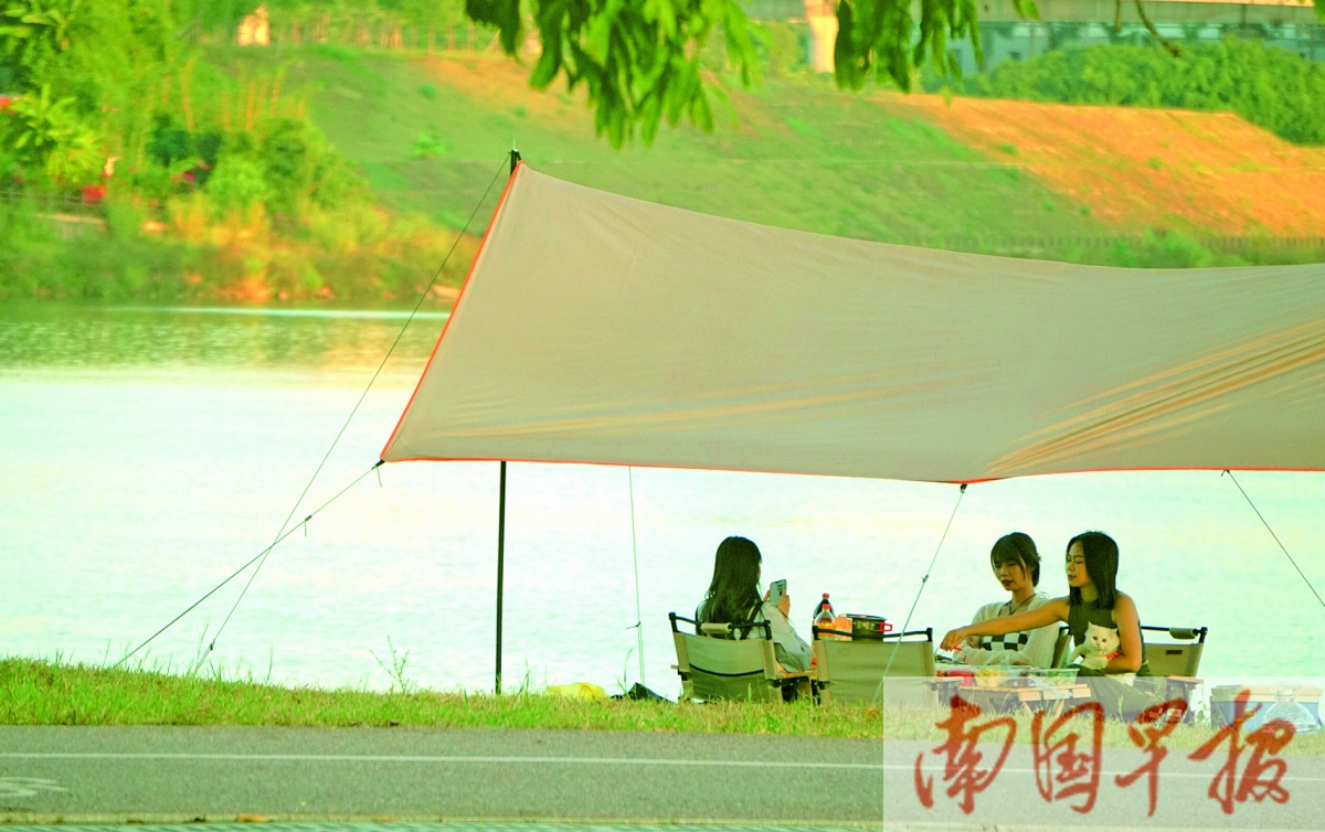 几名市民在江边野餐,享受休闲时光。南国早报记者 何定坚 摄