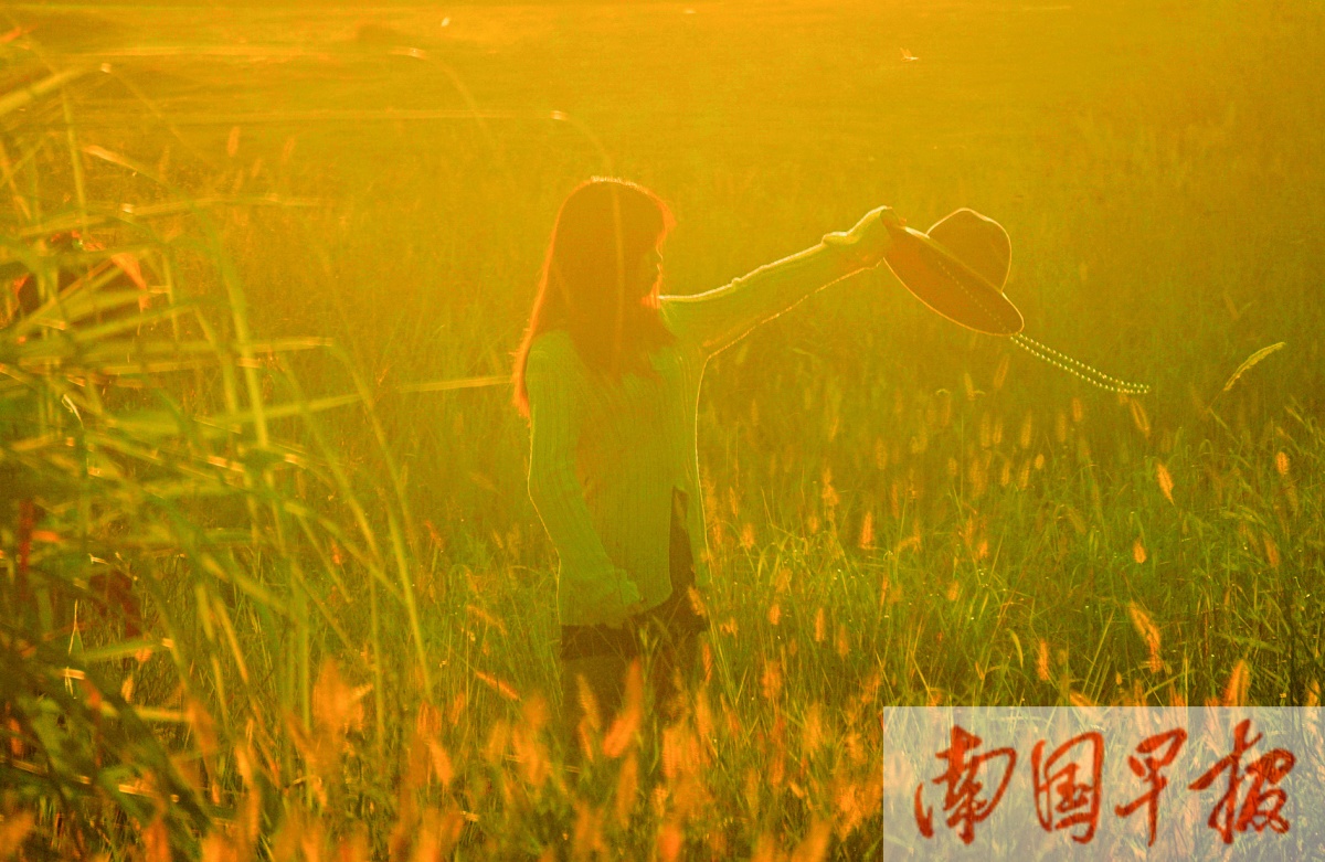 一名女孩在草地上演绎“秋日浪漫”。南国早报记者 何定坚 摄