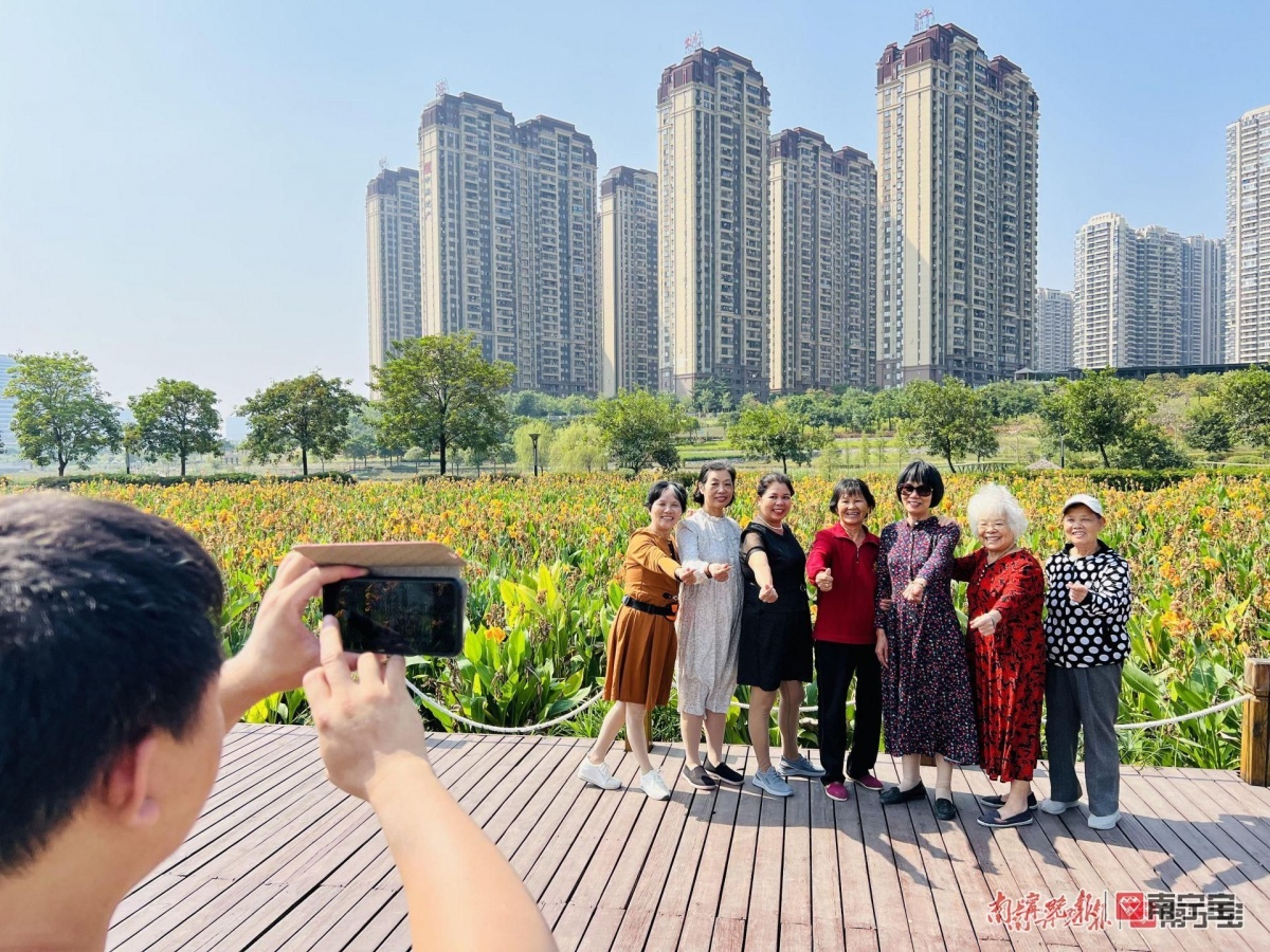 澳华社区党委书记、居委会主任韦燕萍也多次来到那考河湿地公园开展团建活动,可以说是见证了那考河的变化。“以前这里是一条臭水沟,经过整治,变成了美丽的后花园,来这里购房居住的居民越来越多。那考河湿地公园鸟语花香,山美水美花更美,百姓的生活越来越好,幸福指数越来越高 。”