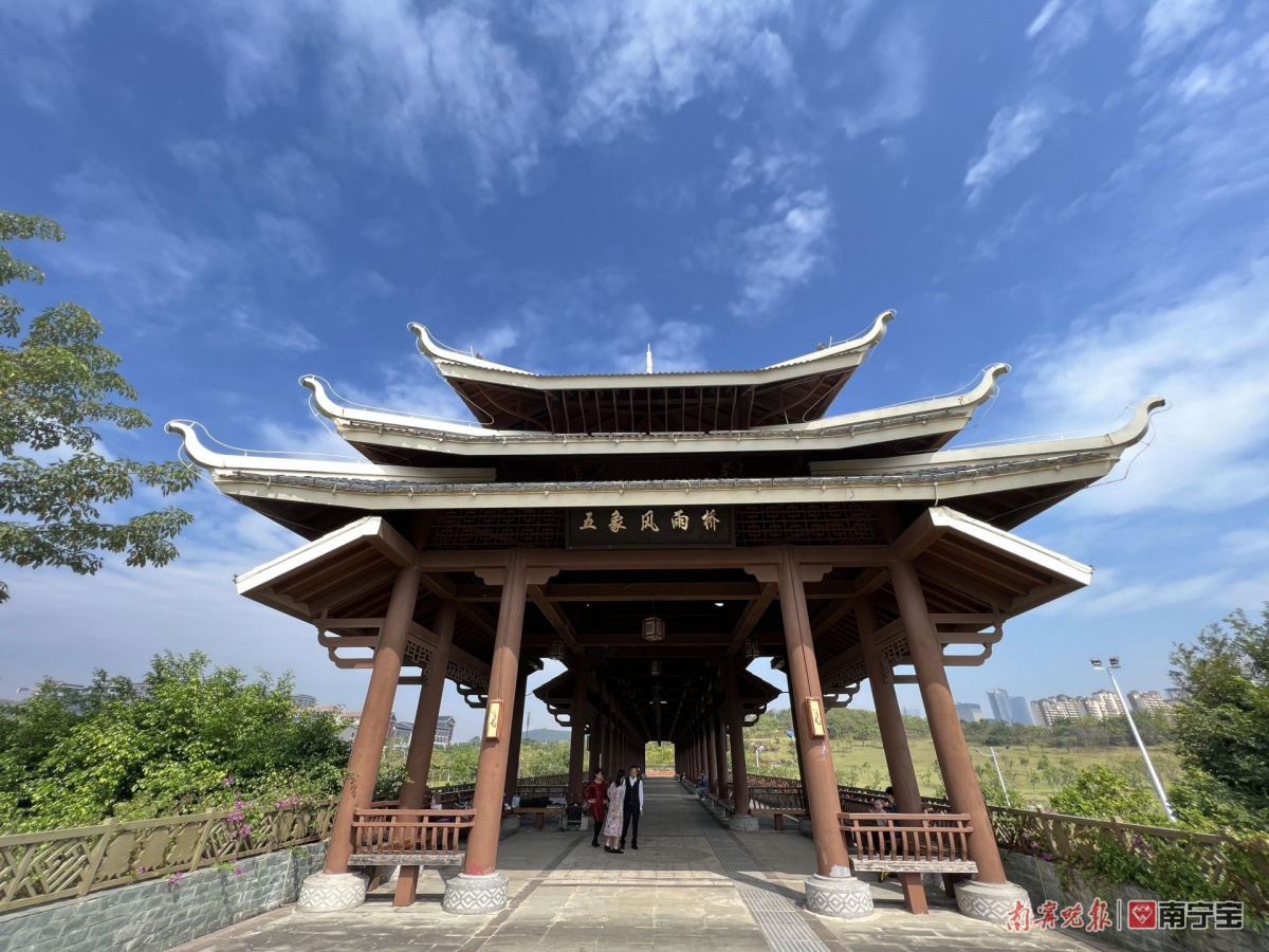 五象风雨桥、大草地、五象塔……在这里,你还可以欣赏到富有广西特色的公园景致,以及众多富有设计感的建筑与雕塑。不管你是身着汉服还是旗袍,或是现代服饰,把亭台楼阁当背景,一张张美美照片,仿佛穿越了时空。