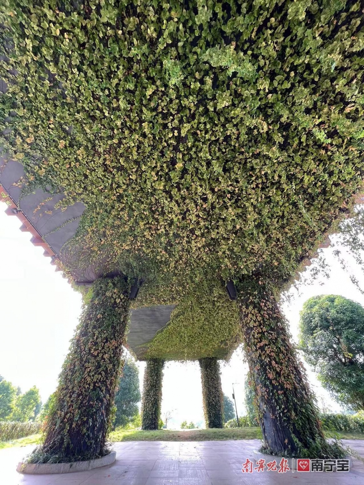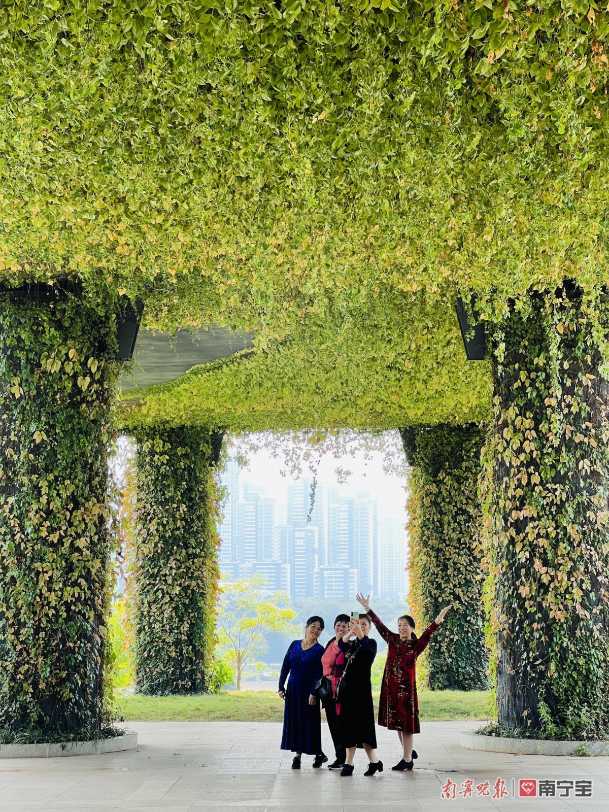 10月下旬的南宁,一场秋雨过后,又是大晴天。蓝天上,白云悠悠,风里有着丝丝凉意。在23℃舒适的气温中,绿意与秋色、阳光打造了一个诗一般的仙境:五象湖公园的“天空之门”,爬山虎编织出来的美景,宁静而美丽,值得在闲暇之时逛一逛,走一走。