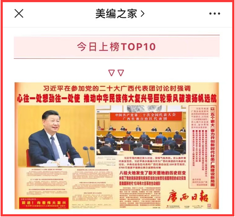③《今日头版|2022年10月18日国内报纸头版TOP10推荐》,广西日报位列第一