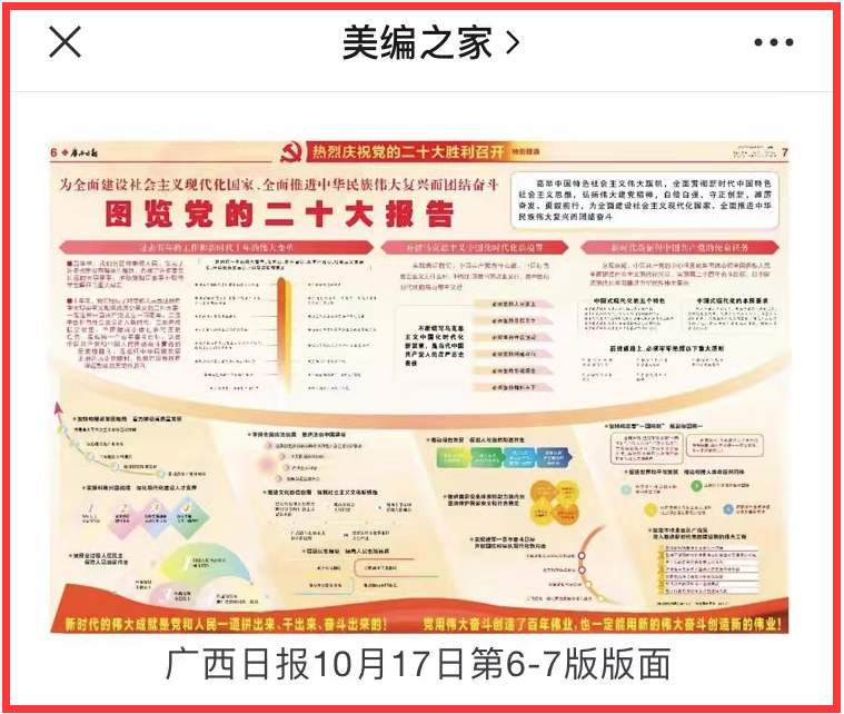 ②《二十大·观媒|20个重磅特刊聚焦盛会开幕》,中央和地方媒体精心策划新闻特刊宣传报道党的二十大,反映社会各界对大会召开的热烈反响,展现全国各族人民永远跟党走的坚定决心和对国家繁荣稳定发展的满满信心。在精选的20个特刊中,广西日报特刊榜上有名。