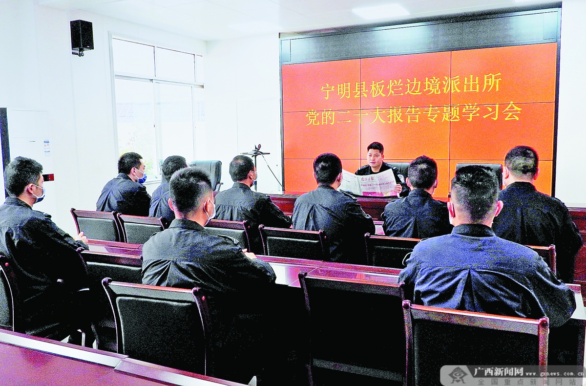 10月23日,宁明县板烂边境派出所党员民警辅警结合当地边境治安工作实际,深入学习党的二十大报告精神。周贻刚 杜万鞭 摄