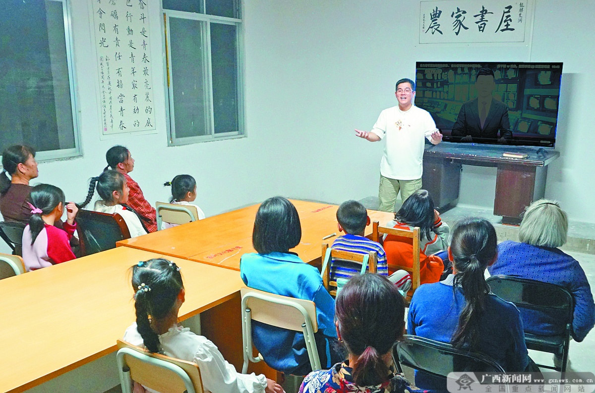 10月21日,龙胜各族自治县龙胜镇双洞村以知识问答、宣讲等形式学习宣传党的二十大报告精神,让二十大报告精神入心入脑。蒙树梅 杨光足 摄