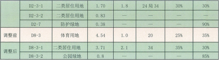 (4)体育用地调整:调整前体育用地面积约4.54公顷(68.1亩),调整后,根据《新老城区快速通道配套设施完善工程专项规划(机场路段)》,同时为满足新增人口对体育设施需求,规划体育用地规模为4.77公顷,较原规划新增约0.23公顷(3.45亩)体育用地。调整后部分体育用地(1.79公顷,26.85亩)位于翠竹路以南位置,其余体育用地(2.98公顷,44.7亩)拟调整至路口村片区在编控规范围内。