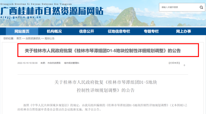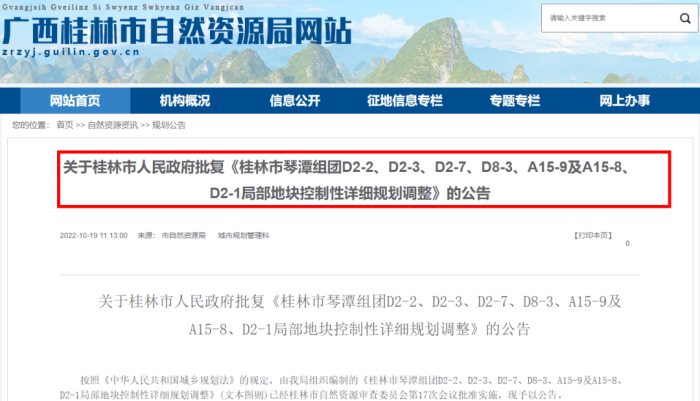 近日,桂林市自然资源局公开发布的信息显示,主城区多个关于地块控制性详细规划的公告获得批复。