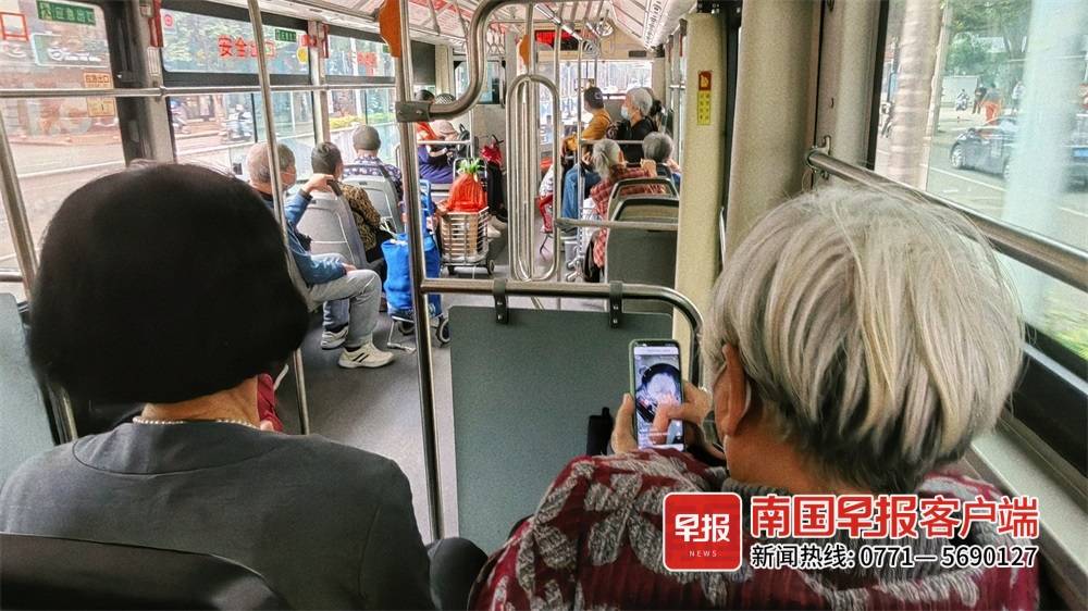 ▲公交车上,银发族几乎占了一大半。