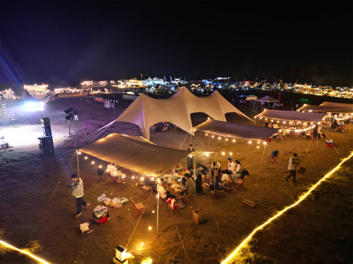 主办方当天还在露营区推出了篝火晚会、烟火秀、音乐会等活动,供游客参与、体验、打卡。
