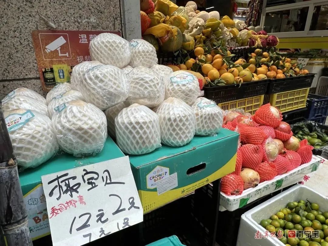 泰国香水椰6元/个,山竹12元/斤,越南青柚30元/个······在市场内,东南亚进口水果的价格会因为品类不同而有高有低,但整体来看还是相对“亲民”。