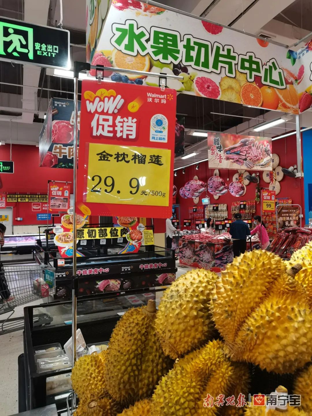 沃尔玛民族大道店内正在促销的泰国金枕榴莲 记者 覃锦华 摄