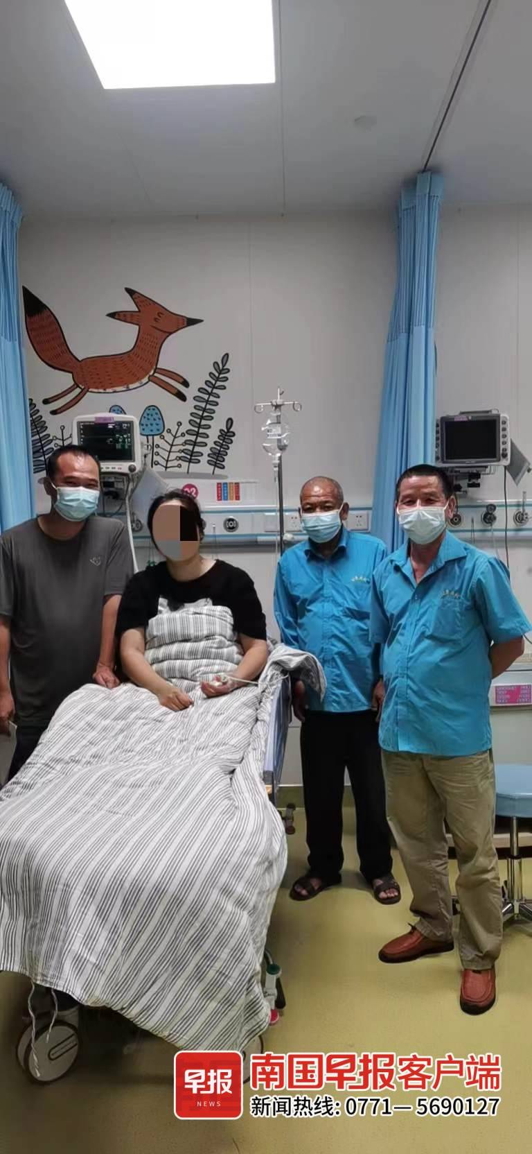 考虑到自己一人照顾甘女士不太方便,刘新强便叫来妻子一起照顾甘女士。直到晚上9时30分左右,甘女士的丈夫从钦州赶到医院,刘新强夫妻才离开。当晚在医院检查无大碍后,甘女士和丈夫也返回了钦州。