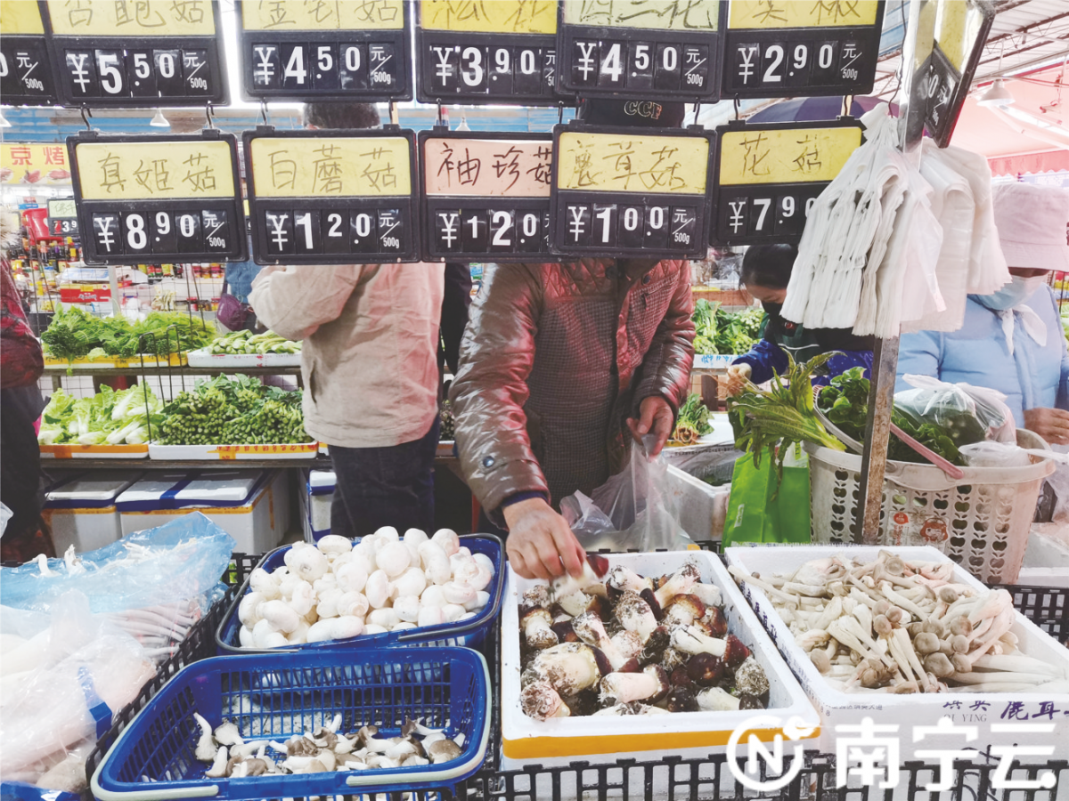 在农贸市场,各种菌菇食材琳琅满目。记者 覃锦华 摄