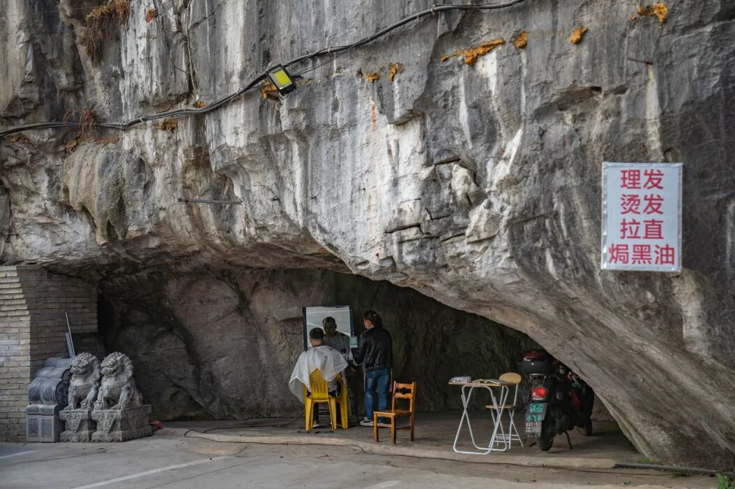 六合圩曾经是桂林最大的旧货市场。灵剑溪边满是草药摊子,刮痧拔罐、镶牙补牙一个挨一个,硕大的蜂巢在袋子里放着,买蜜现取。旧货文玩、估衣旧物、针头线脑也有,算不得多。巨大的、凹进去的山崖下面,花几块钱就可以剃头刮脸。不远的山崖上刻着六个摩崖大字:静江府大都督。往前走就是弹子岩。385年前的农历5月26日,徐霞客吃饱喝足,打着火把从这里进入,“过若堂殿者三四。火所照耀,上下四方,皆滴乳流注,千奇万怪,恫心骇目,不可正视。有如人立,如兽蹲,如蛟蛇结蟠,如波涛汹涌,又有如仙佛之端严,鬼神之狞恶,如柱,如剑,如棋局,如钟鼓铃铎,考击之有声……”如今弹子岩里面是个酒窖,洞口外的酒幌下,一个满面银髯的老者守着自己的草药摊子,刚好呷了一口酒。
