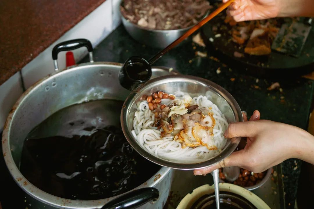 米粉熟得极快,片刻间已盛在碗中,浇上卤汁,铺满锅烧,递到食客手上。调料自己加,丰俭由人。老米粉店下午四点就关门,开始熬制卤水。卤水是不同风味的来源,各有奥秘,各有拥趸。问哪家米粉最好?本地人说法惊人地一致,“哪有最好吃的粉?只有你最喜欢的味道!”更有趣的是,在桂林,米粉不仅是食物,还是量词,停车费10元一小时?桂林人会说:“好贵呦,两碗粉。”