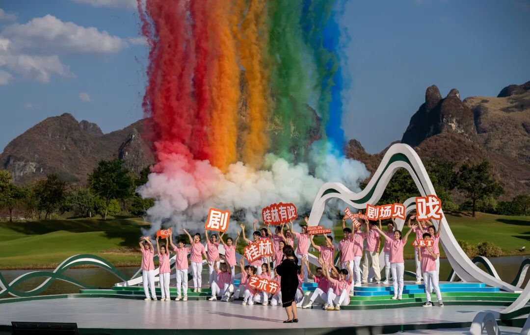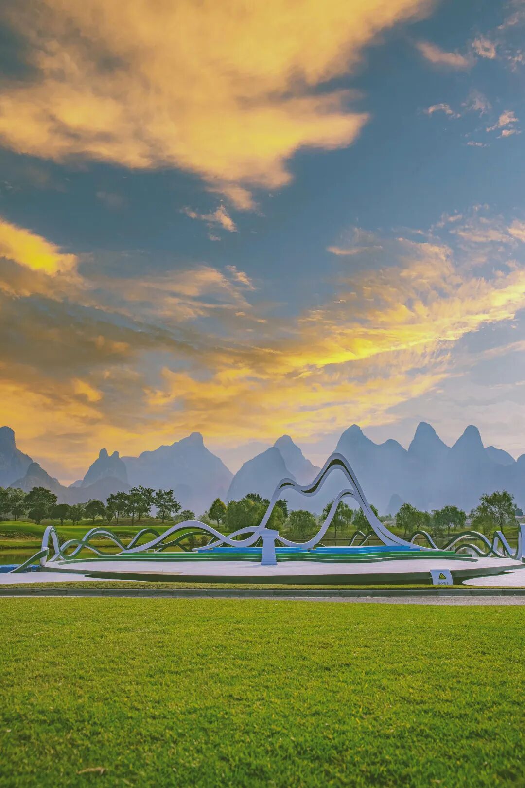 桂林艺术节的启动发布会式定在了桂海晴岚。那儿有大片起伏的、可以席地而坐的绿草地,远处是似连非连的山峰。