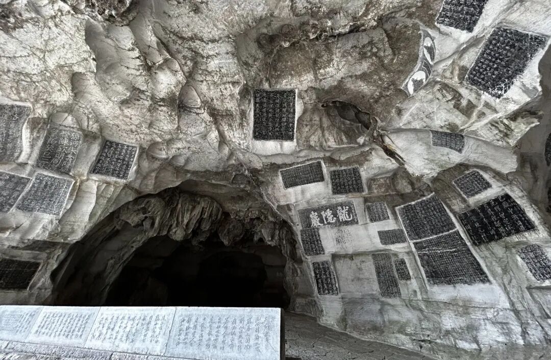 桂林多洞穴也多石刻。摩崖石刻以七星山月牙山脚的龙隐岩最为著名。全国唯二蔡京所书《元祐党籍碑》,这里有一块。唐宋碑刻有百块之多,后世文人也不甘落后,于是龙隐岩上密密麻麻,目力所及之处,再也找不到平整的地方,所谓“壁无完石”。