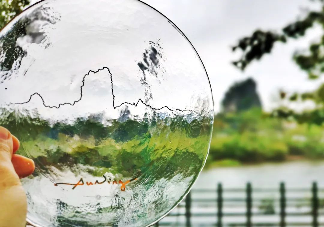 苏宁设计了一组高级水晶玻璃器皿,唯一的装饰花纹是一条金色的线。他让我举起来对着窗外看,“看不出来吗?这条线是伏波山的轮廓。”苏宁拿着咖啡杯,边喝边对我笑。