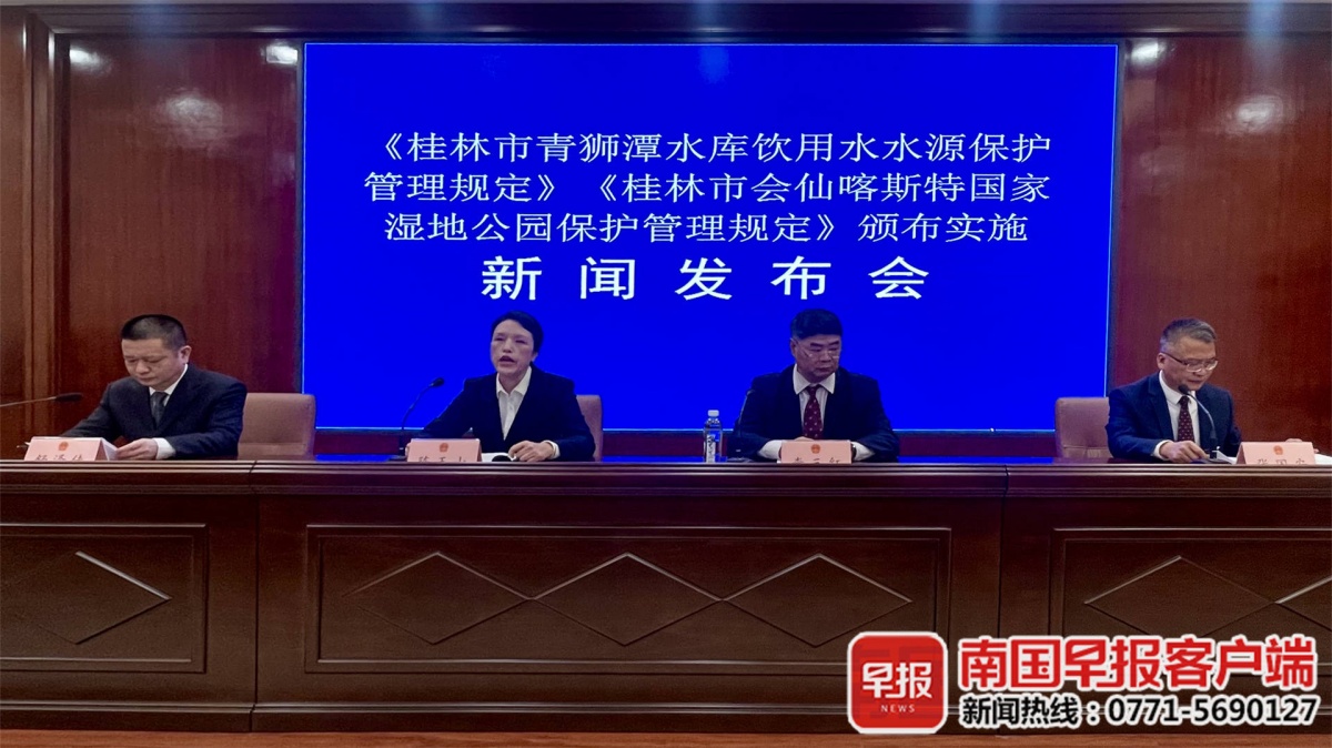 12月8日,记者从桂林市召开的新闻发布会上获悉,《桂林市青狮潭水库饮用水水源保护管理规定》《桂林市会仙喀斯特国家湿地公园保护管理规定》将于2023年1月1日起实施。