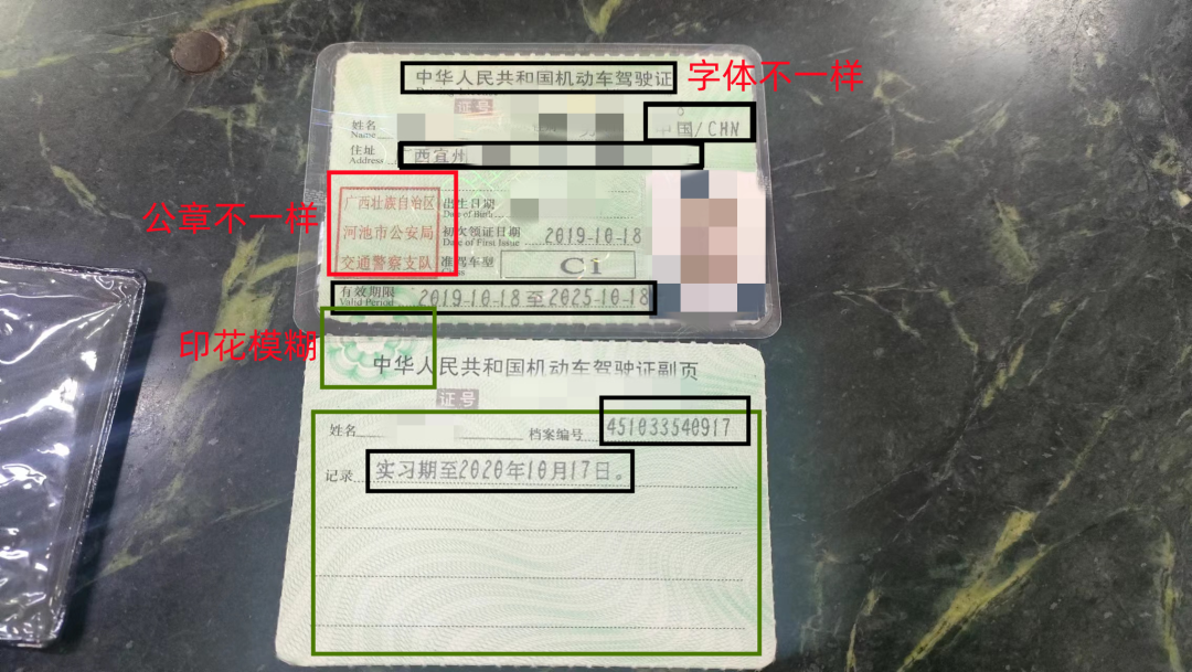 当民警要求覃某出示相关证件时,戏剧性的一幕发生了:只见覃某淡定自若地从包里掏出一本“驾驶证”递给民警。民警一头雾水,根据大数据研判,覃某系无证驾驶,那么这本驾驶证从何而来?
