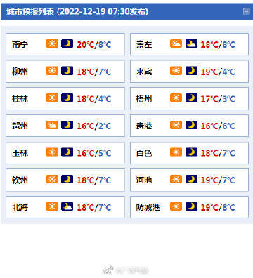广西各市具体天气预报: