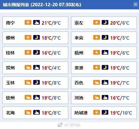 预计三天内广西为晴到多云天气,这些地区有冰冻或霜冻