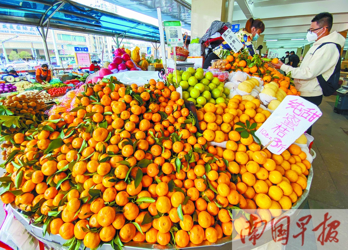 冬日的广西果园里,成熟的柑橘类水果黄澄澄的,压弯了枝头。各大市场里,水果区域的主色调也以橙色为主,沃柑、砂糖橘、脐橙等柑橘类水果,备受市民青睐。