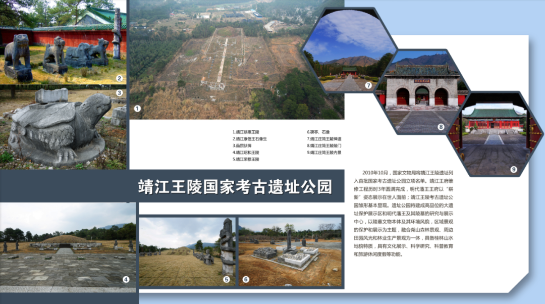 近年来,靖江王陵持续开展考古调查、勘探、发掘与研究,按计划实施文物保护与展示工程和园区基础配套设施项目建设,形成了完整的研究保护展示体系和成熟规范的运营管理模式,2021年6月25日靖江王陵考古遗址公园核心区“三陵一馆一基地”全面开园。
