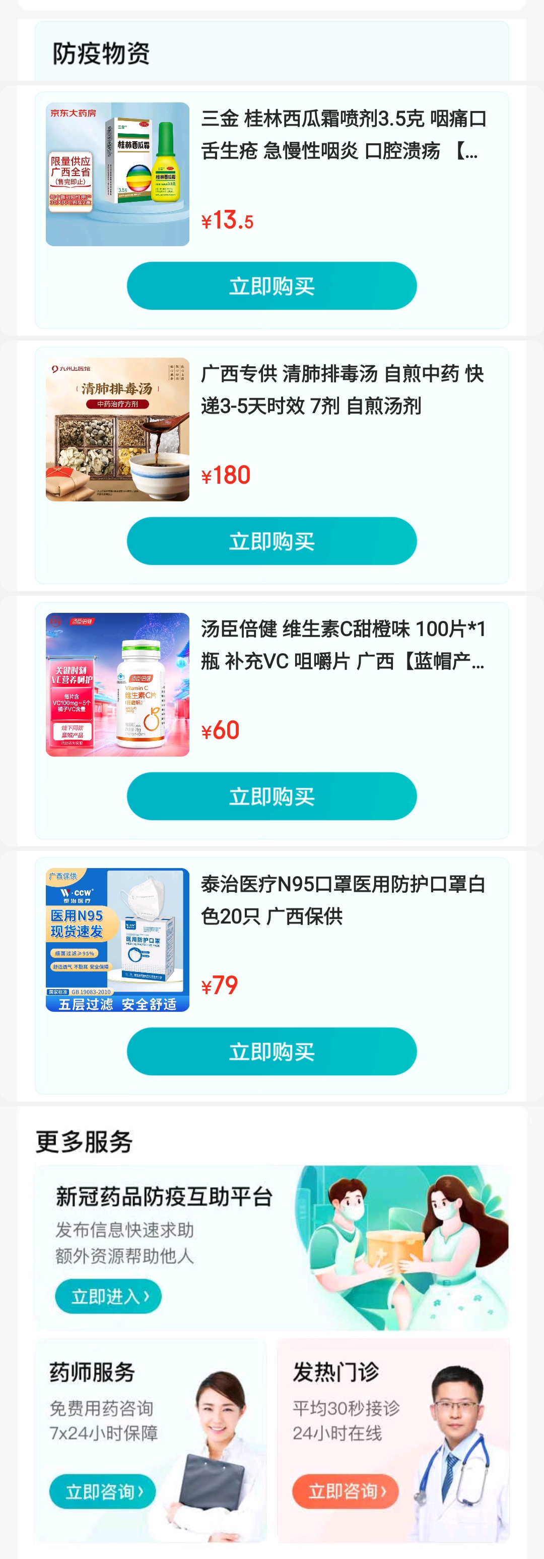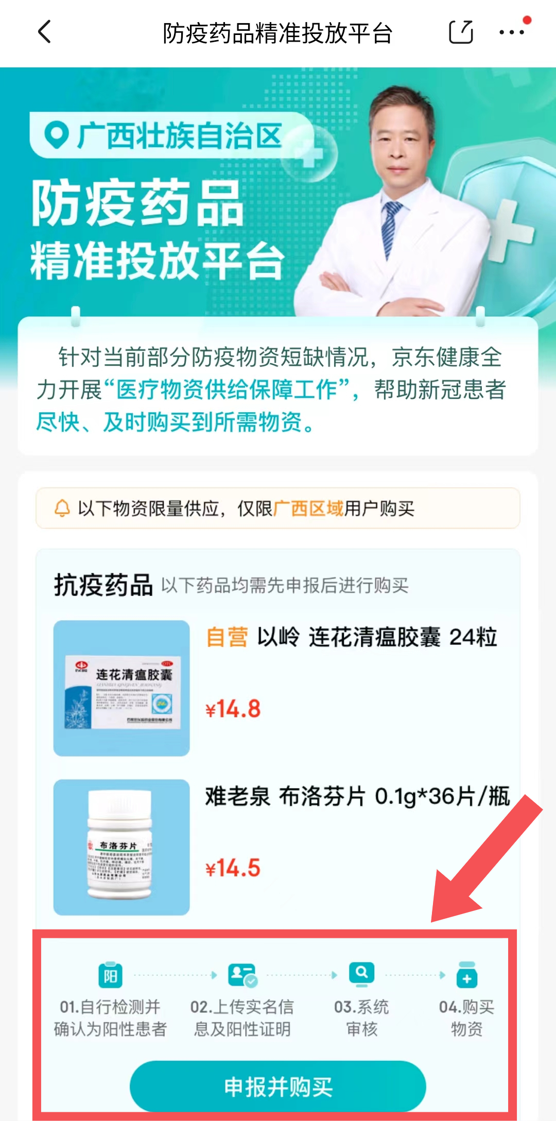 据了解,此平台由自治区工业和信息化厅会同自治区商务厅,联合京东健康联合推出,首批投放药品包括布洛芬、连花清瘟、中药饮片等防疫物资,均以平价销售。