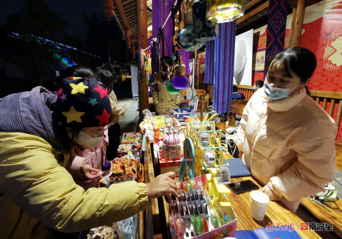 现场还设置了民族与潮文化碰撞、融合的系列夜经济推介与消费活动,开启一场绝妙的跨年潮玩体验。“十二夜宴 烟火相遇”“集结八桂 邂逅广西”“到此一游 潮享八桂”“国风桂派 博物潮市”“田野星光 自在营地”“博物万象 民族书展”六大主题板块内容,精彩绽放在南宁的夜空之下。