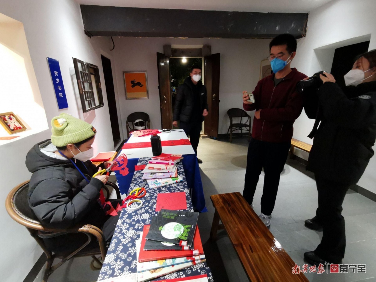 市民走进客家书屋体验非遗剪纸技艺。记者 赖有光 摄