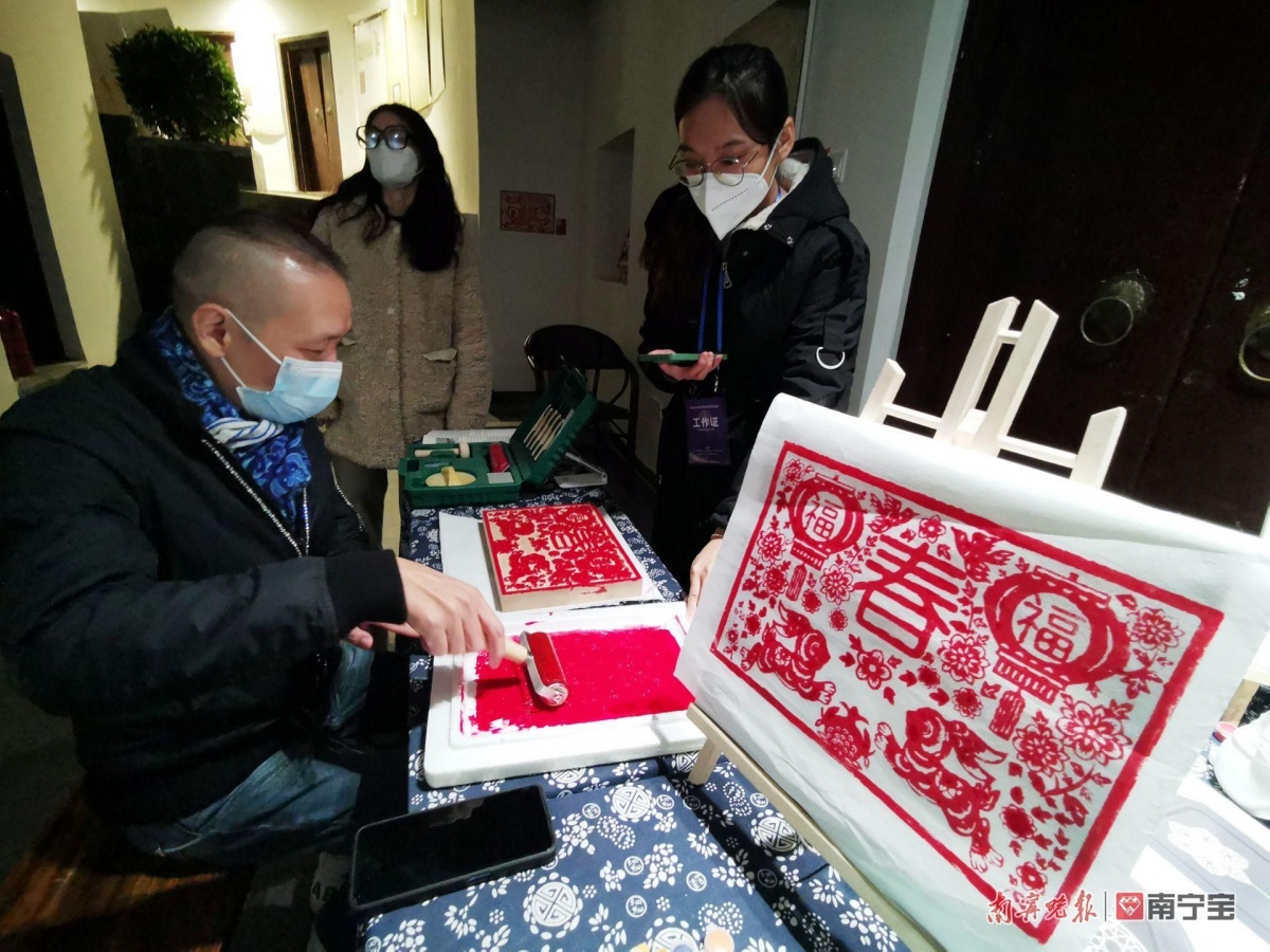 市民走进客家书屋体验非遗刻板印刷。记者 赖有光 摄