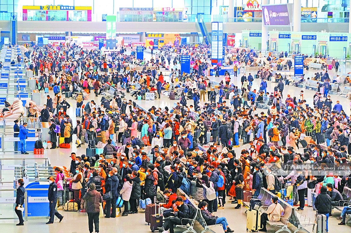 今年春运,中国铁路南宁局集团有限公司预计发送旅客1200万人次,日均30万人,同比增长48.2%,该局将按照“充足安排、按需启动、响应快速、应急有备”的思路科学安排运力,加大重点地区和时段运力投放。该公司客服中心主任赵荃介绍,广西作为务工人员输出地区,客流高峰主要集中在节后,节前以到达客流为主。其中,节前客流主要以去往成渝、昆明等方向为主,安排旅客列车333对,客座定员约26万人;节后以广深、京广、沪宁杭等地为主,安排旅客列车335对,客座定员约26.5万人。节后旅客出行人数预计远大于节前,客流高峰集中在正月初五至正月十二时段。
